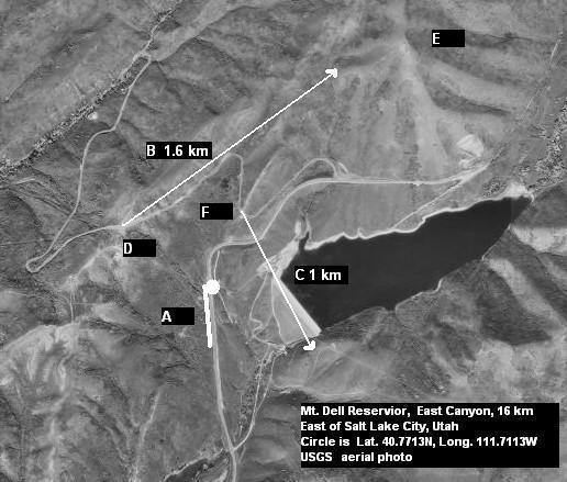 The second site was at the Little Mountain Summit/Mt. Dell Reservoir area, about 16 kilometers east of Salt Lake City, Utah, at Latitude 40.7713° North, Longitude 111.7113° West. The mountainous East Canyon/Mt. Dell site descends about 1,000ft from Little Mountain Summit to the I-80 freeway between Salt Lake City and Park City, Utah. Portions of the road provide a straight 1.5-kilometer gradually descending roadway. Nearby hills at 1 or 2 kilometers distance offer additional opportunities to make long-distance measurements.